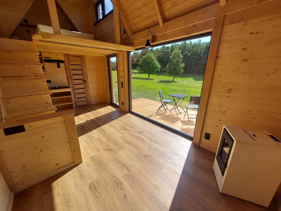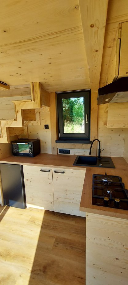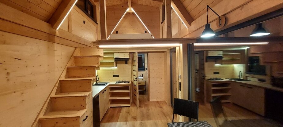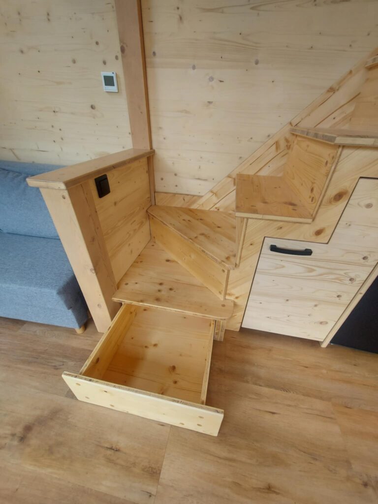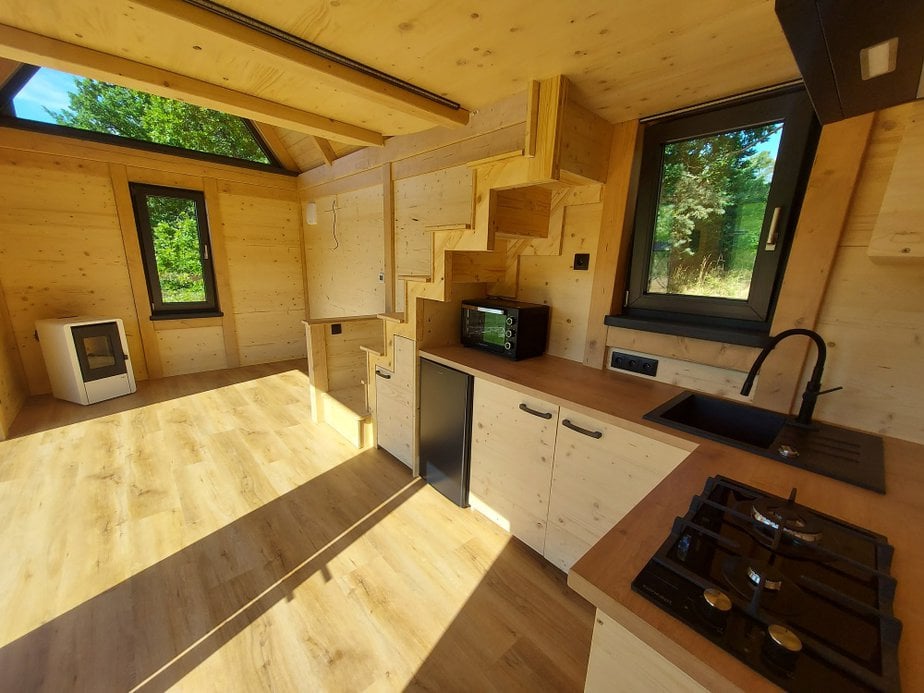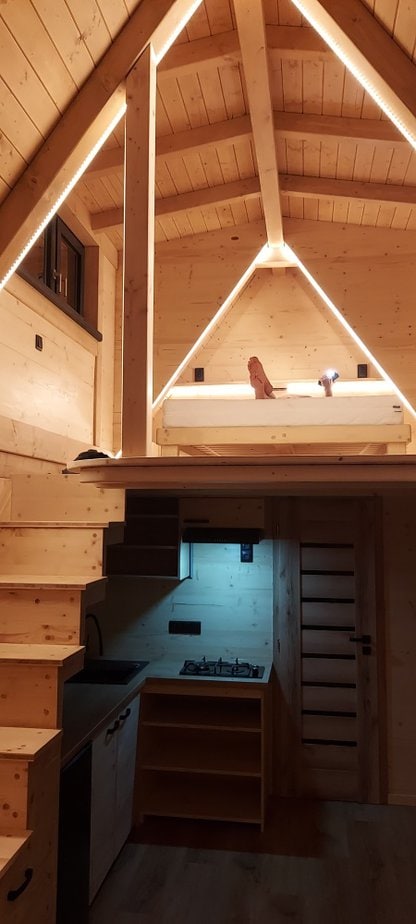 • celková užitná plocha: 27,1 m2 = přízemí 19,1 m2, ložnice v patře (loft) 8 m2